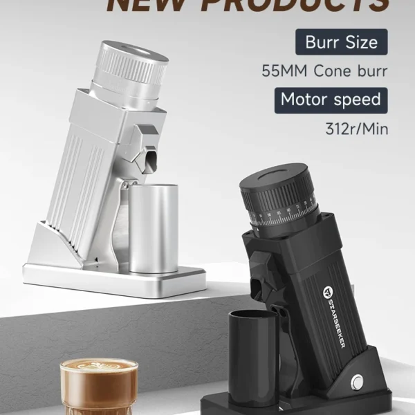 STARSEEKER E55 Electric Coffee Grinder 55MM Espresso Cone burr Stepless Fineness Adjustment Cold Brew Bean Grinder Black Sliver