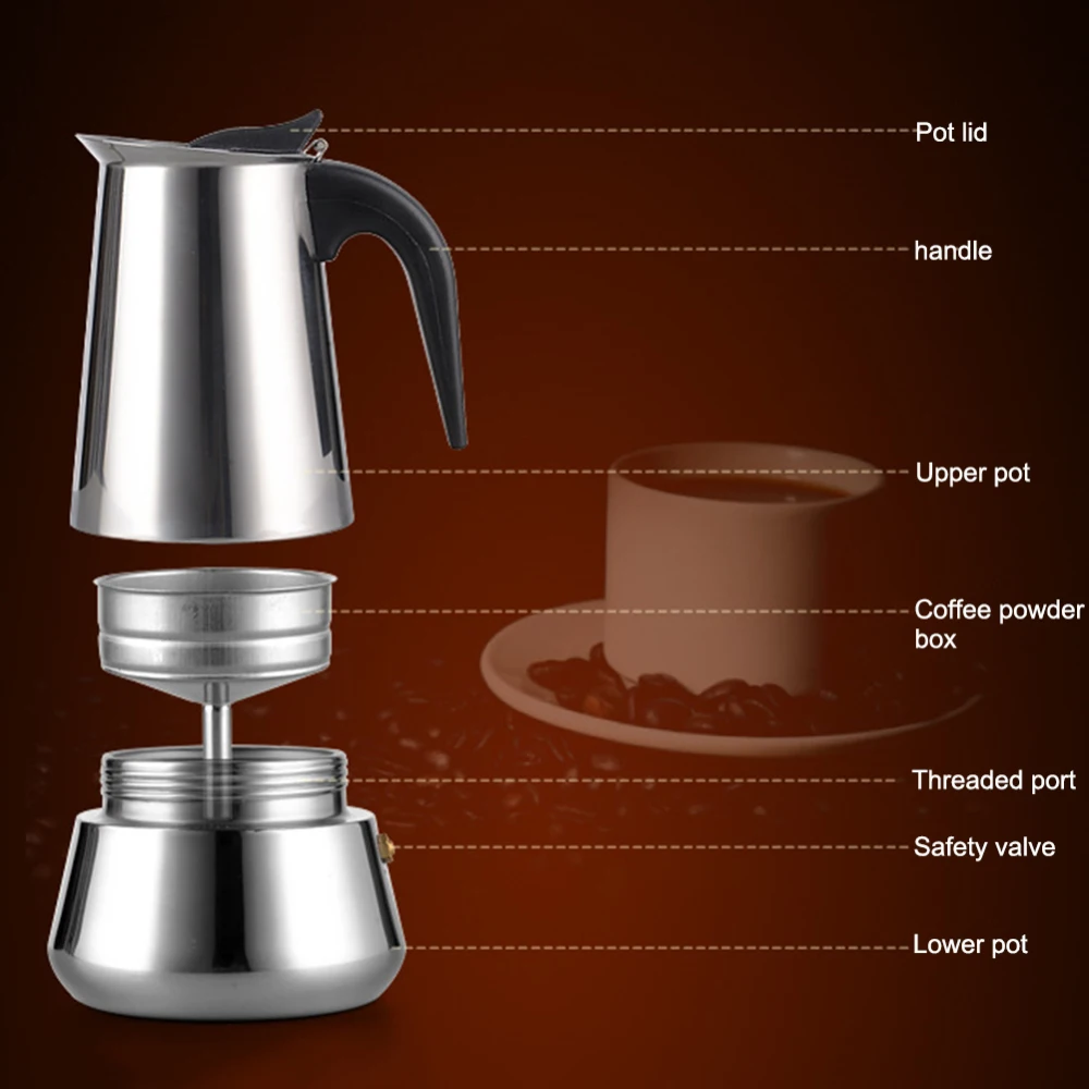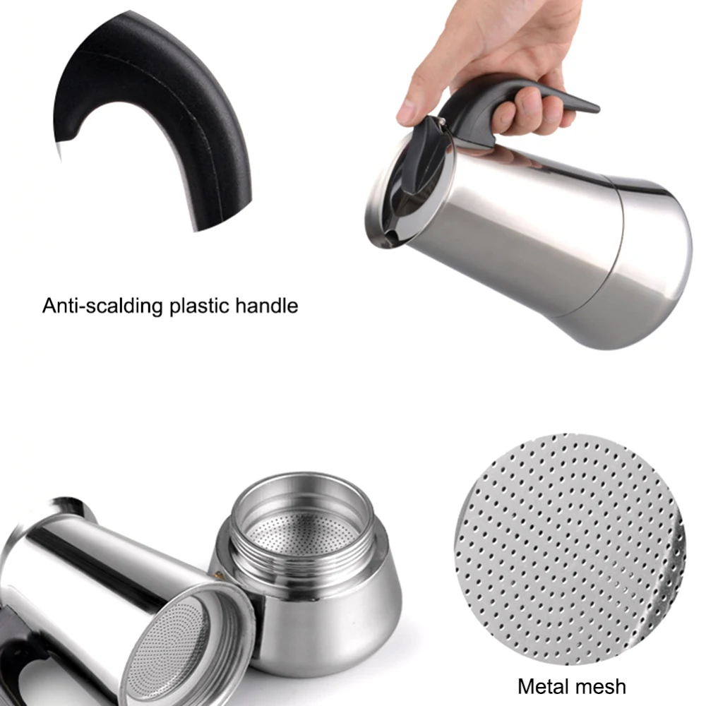 Aluminum Moka Pot Classic Stovetop Coffee Maker Reusable Filter Espresso Coffee Maker with Antiscald Handle Design Kitchen Use