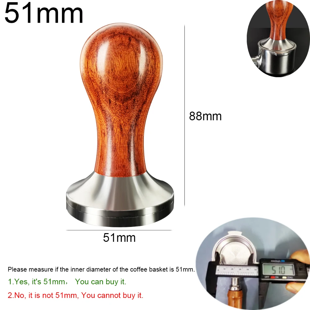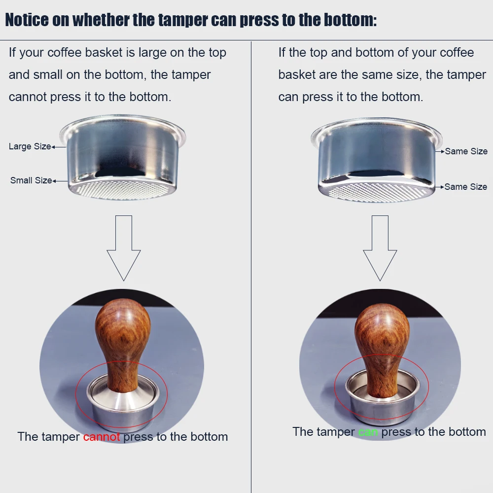 Tip: Please measure the inner diameter of your coffee basket before purchasing a tamper. You can purchase a tamper based on the inner diameter of your coffee This step is very important. In case you buy the wrong size.