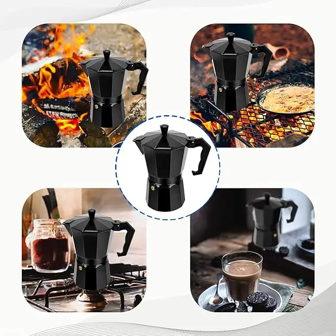 - Moka pot: Crafted in the traditional Italian style, this Moka pot ensures a smooth and flavorful extraction, delivering a delightful cup of coffee every.