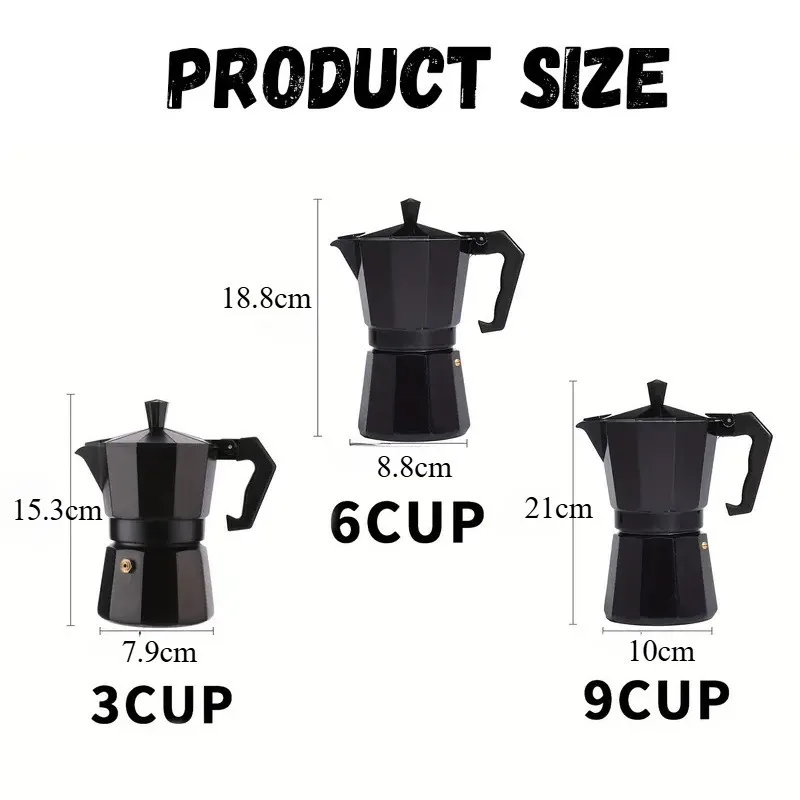 - Moka pot: Crafted in the traditional Italian style, this Moka pot ensures a smooth and flavorful extraction, delivering a delightful cup of coffee every.