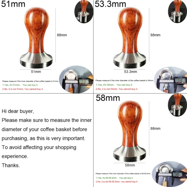 51/53.3/58mm Espresso Tamper Coffee Stainless Steel Distributor Tampers Accessories Solid Wood Handle For 51/54/58mm Portafilter
