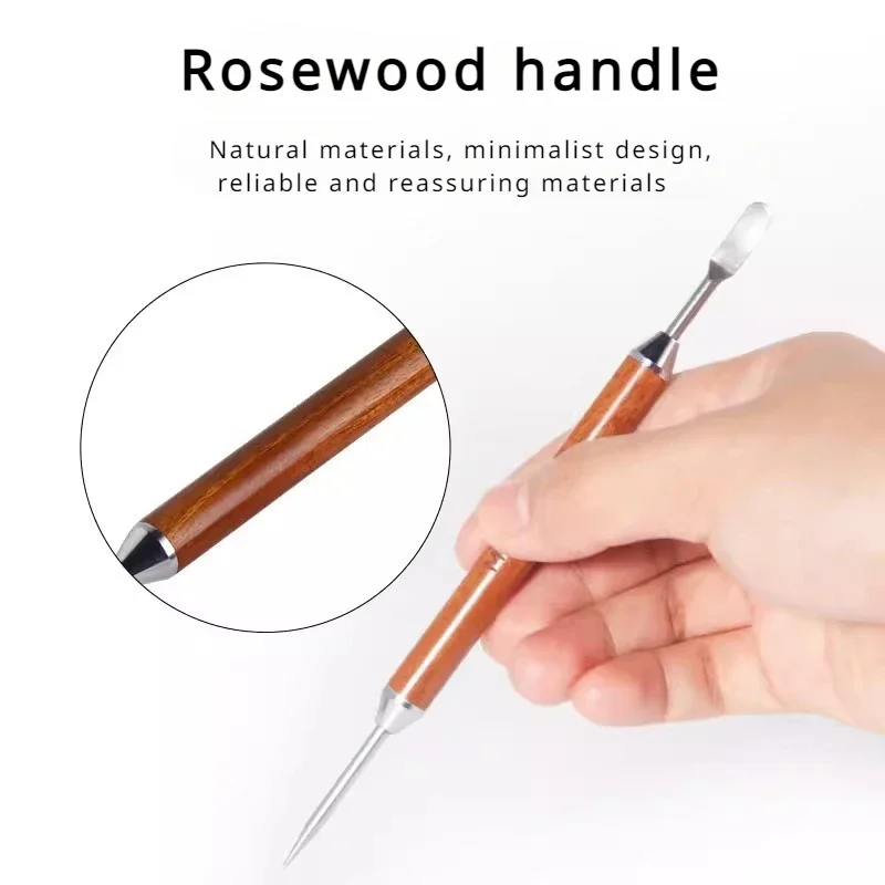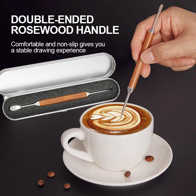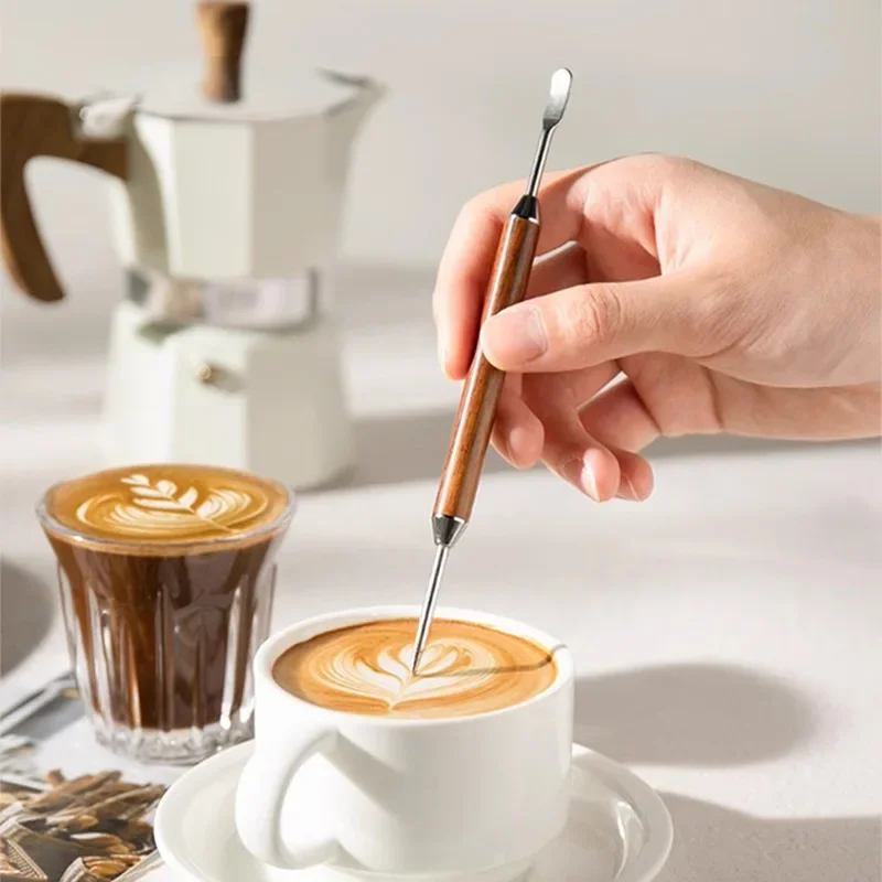 Stainless steel coffee decorative art pen with wooden handle, latte flower needle tool accessories, styling tool latte Tool